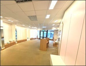 The unit benefits from a powder coated aluminium shop front with an electric roller shutter, a three phase electricity supply and an alarm system in situ. The sales area is fitted to a good standard with plastered and painted ceiling with recessed and panel LED lighting and a carpeted floor.